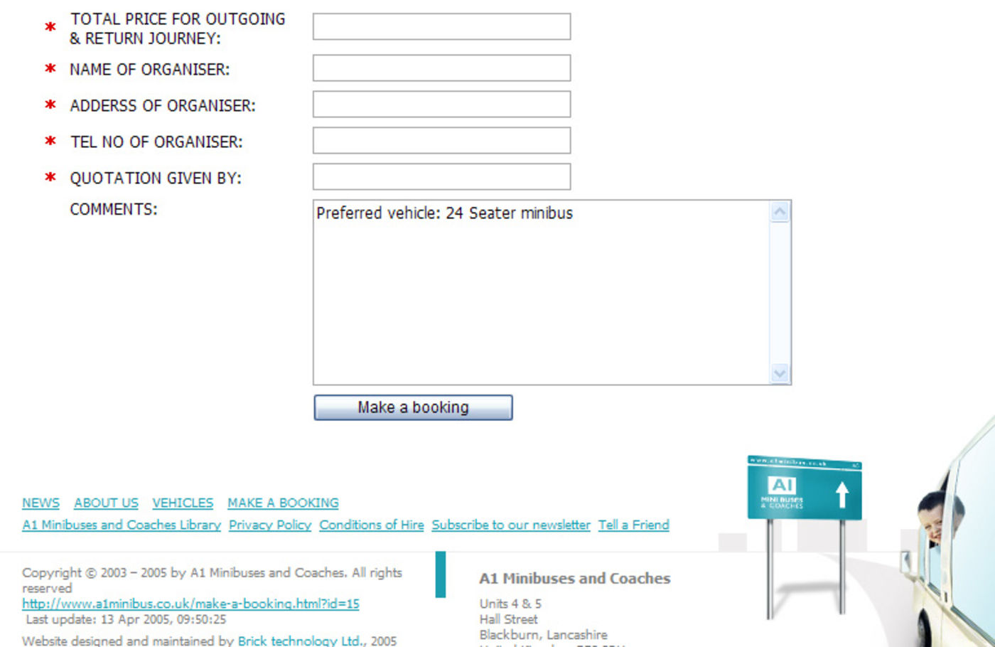 Booking footer - A1 Minibuses and Coaches