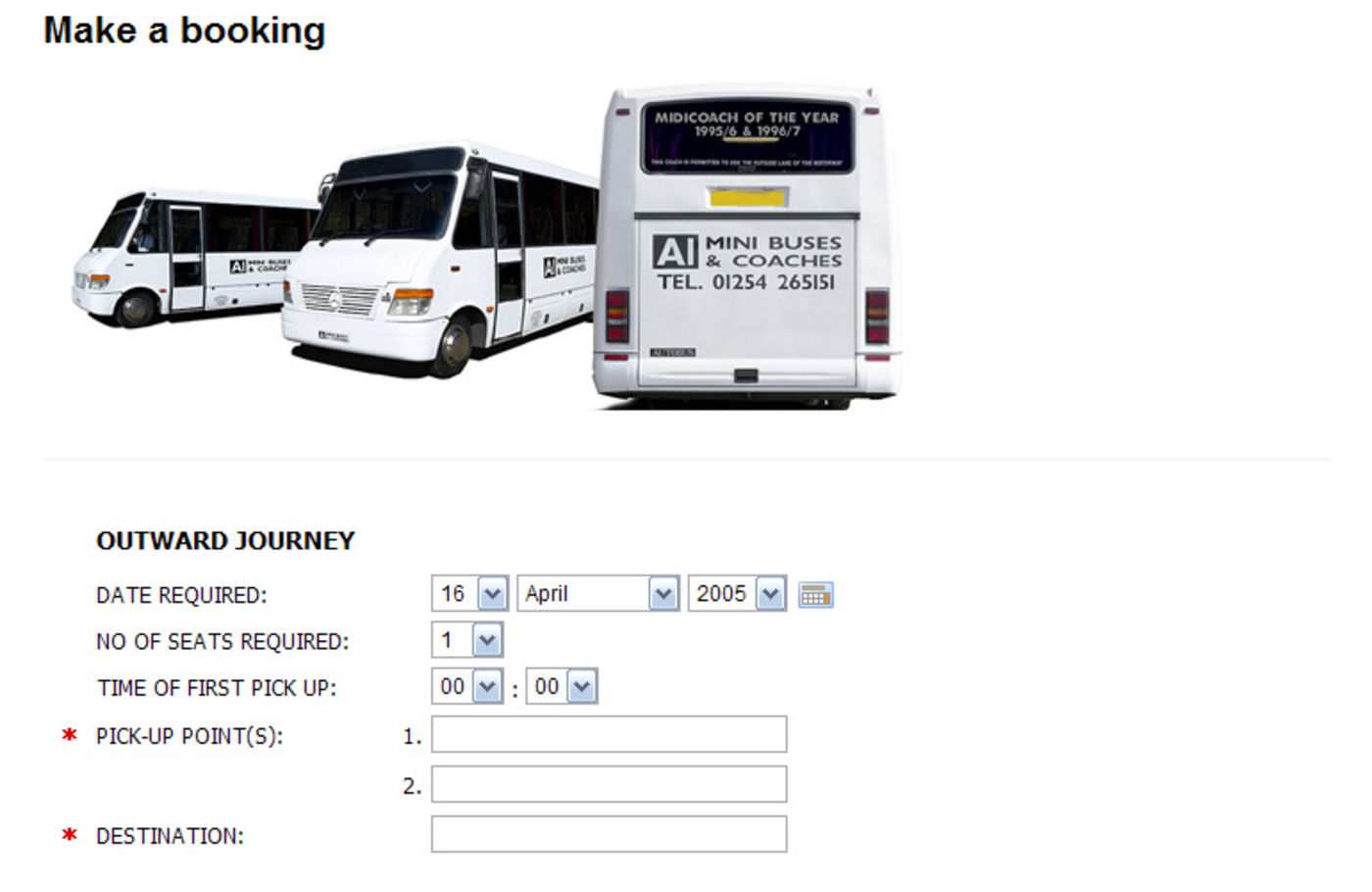 Booking header - A1 Minibuses and Coaches