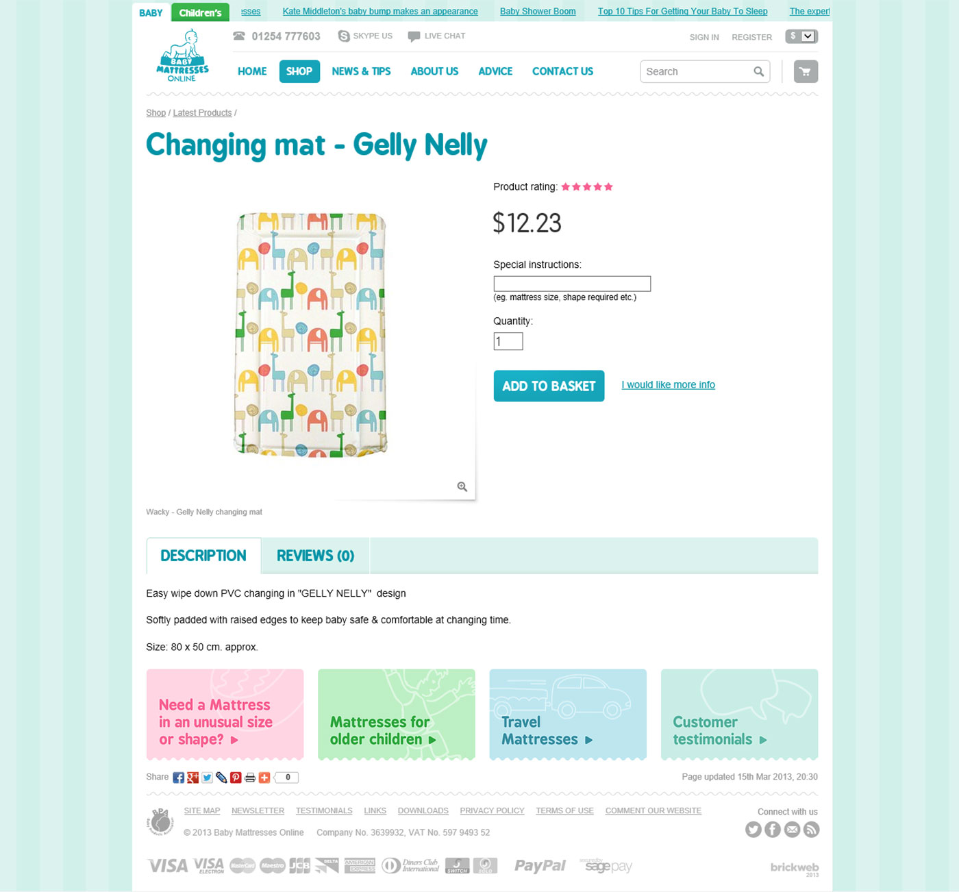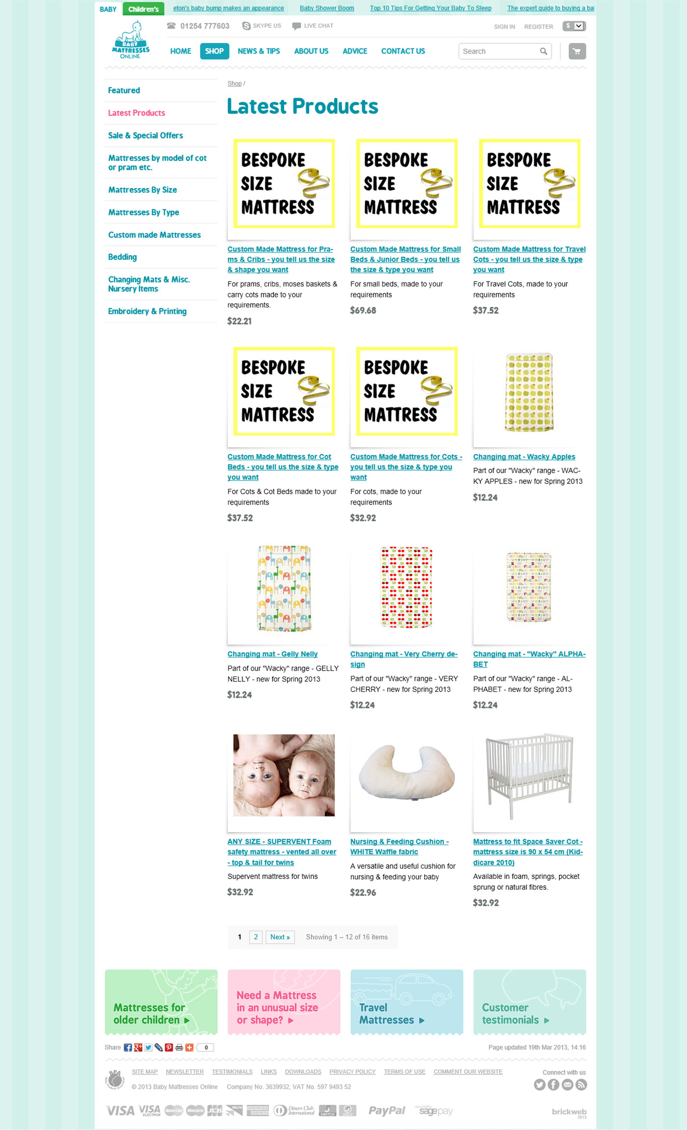 "Where do I begin? We couldn’t be more pleased with our websites designed by Brick! Since hesitating about & then launching the retail website a couple of years ago our business has changed considerably. We hadn’t realised that there was so many extra orders out there waiting to be taken. From being complete novices where websites are involved we now have a team of staff who are all familiar with editing the website & processing the orders. I cannot say how helpful Brick have been with our probably tedious questions over the last couple of years – always there to help out by email, phone or online support almost any time of day! One to one support has always been available when requested. We are ranking number one or two on Google now for “cot mattress” – what more could we want? Even our customers comment on how professional we come across and how our website is easy to use.