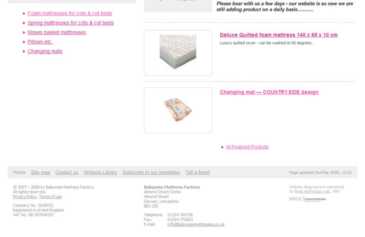 Where do I begin? We couldn’t be more pleased with our websites designed by Brick! Since hesitating about & then launching the retail website a couple of years ago our business has changed considerably. We hadn’t realised that there was so many extra orders out there waiting to be taken. From being complete novices where websites are involved we now have a team of staff who are all familiar with editing the website & processing the orders. I cannot say how helpful Brick have been with our probably tedious questions over the last couple of years – always there to help out by email, phone or online support almost any time of day! One to one support has always been available when requested. We are ranking number one or two on Google now for “cot mattress” – what more could we want? Even our customers comment on how professional we come across and how our website is easy to use.