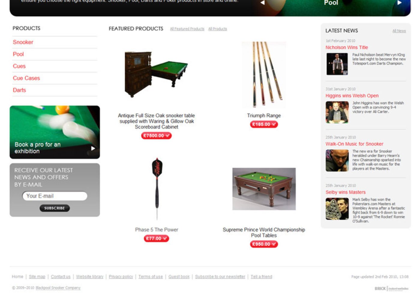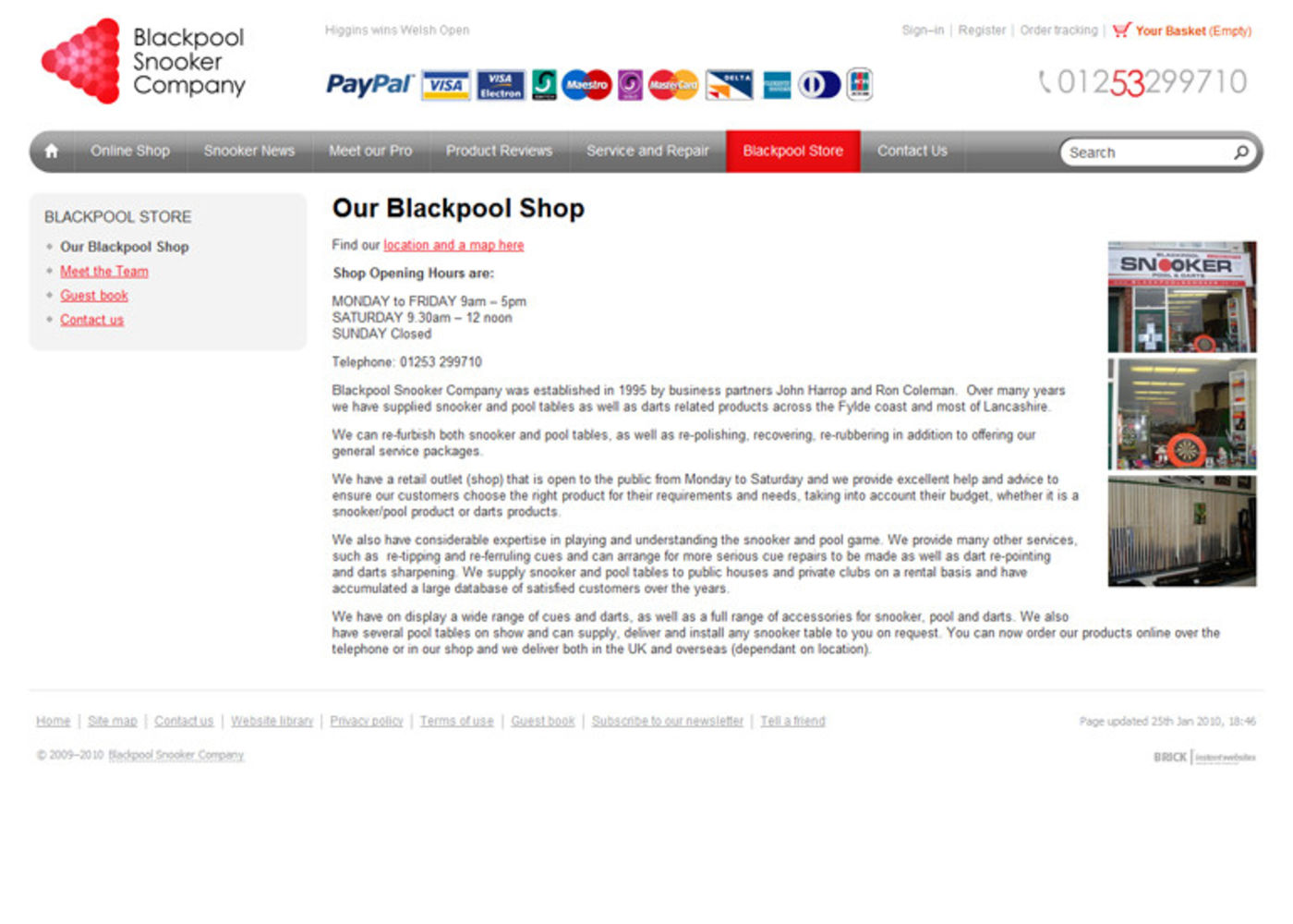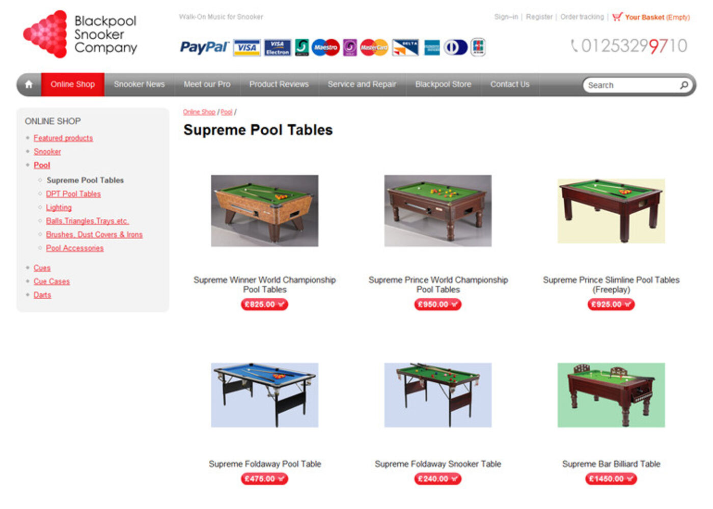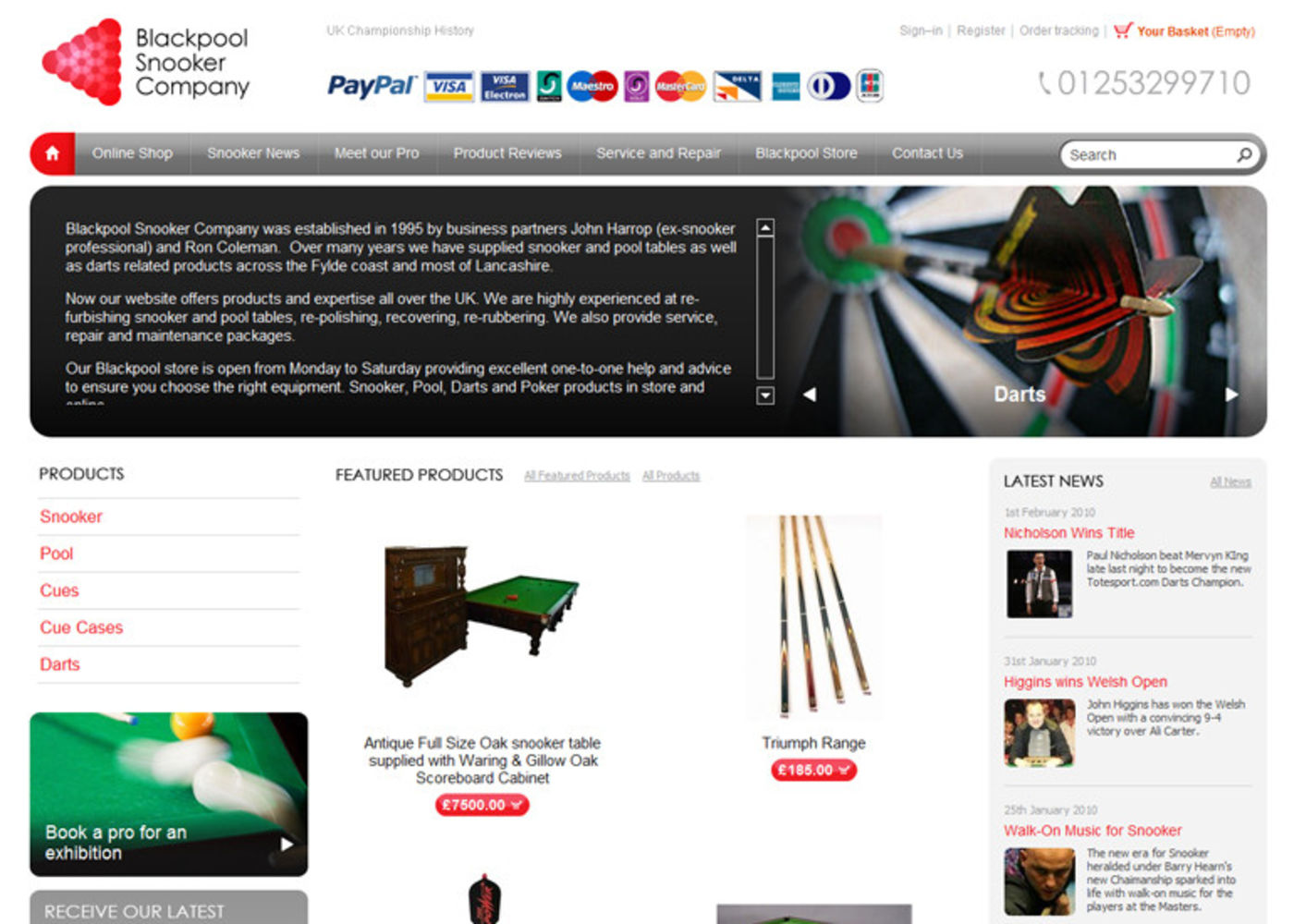 Blackpool Snooker Company - Snooker Darts and Pool equipment sales and service. Shop online.