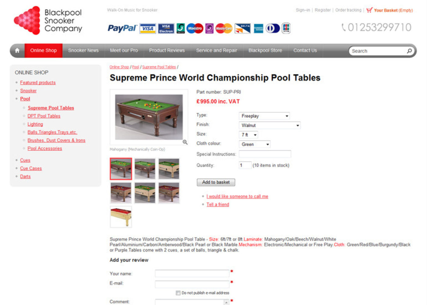 Blackpool Snooker Shop Online