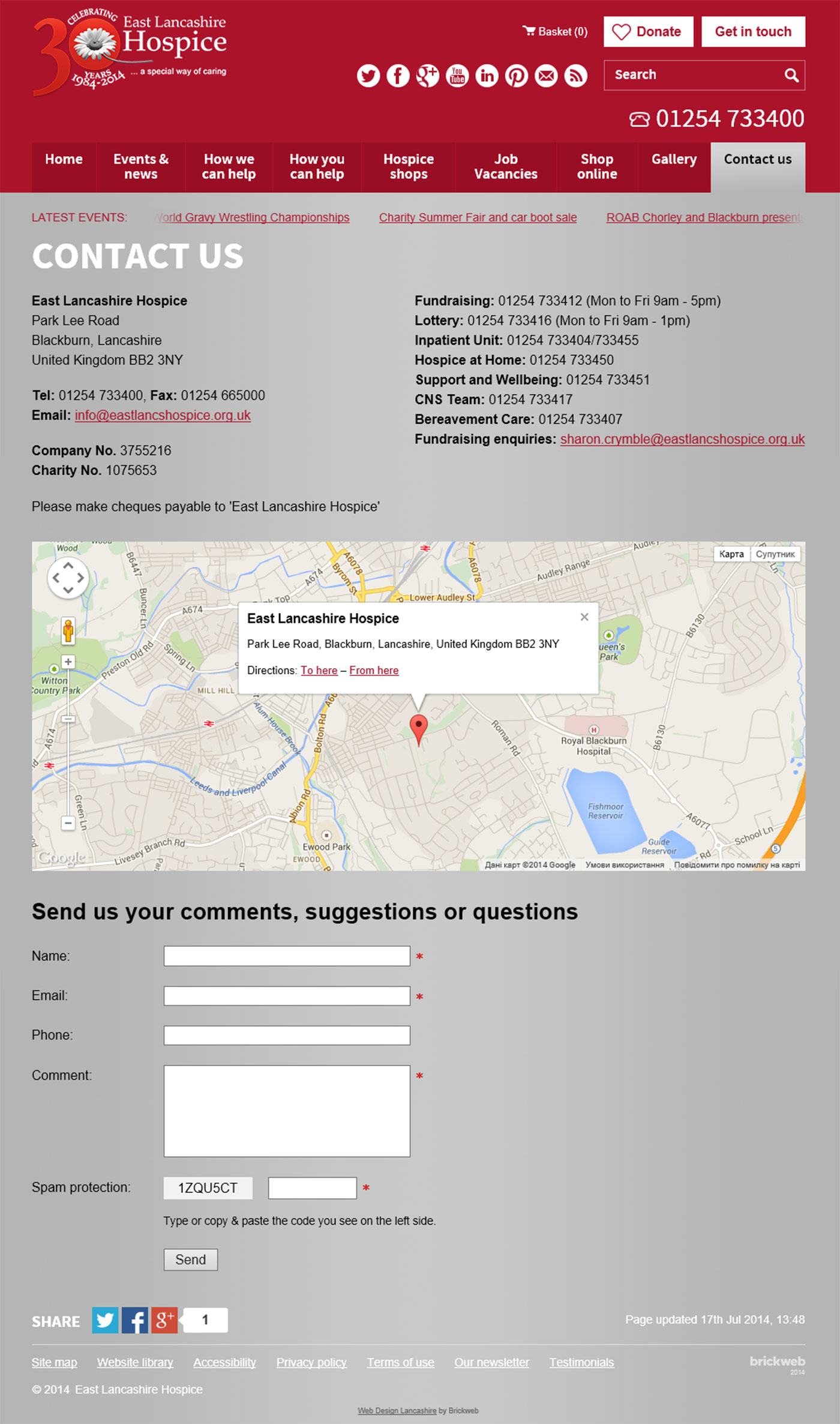 East Lancs Hospice offers a special way of caring for people suffering from life limiting illnesses throughout Blackburn, Darwen, Accrington and Clitheroe. ( 2014)