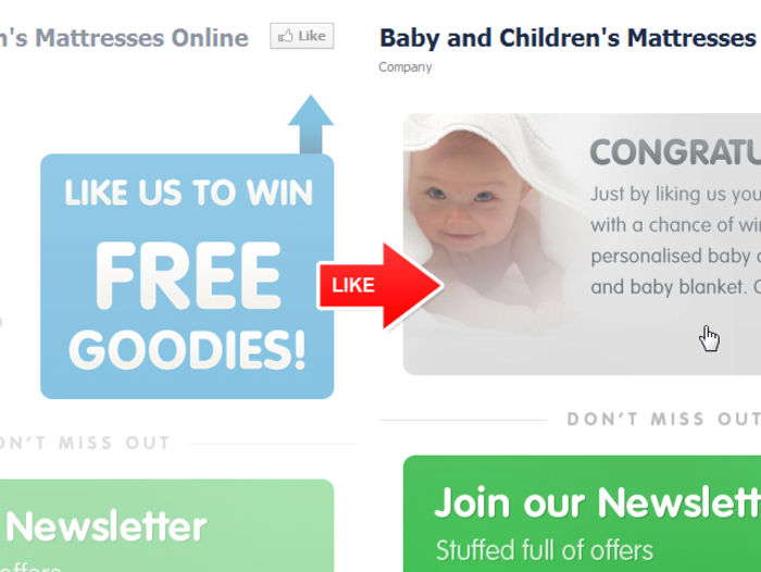 • Two Facebook pages, one which will show before they “like” you to maybe give them an overview and reasons as to why they should “like” you. Further to this you can have a second on which will welcome them to the site and maybe feature promotional codes or special offers once they have liked you.