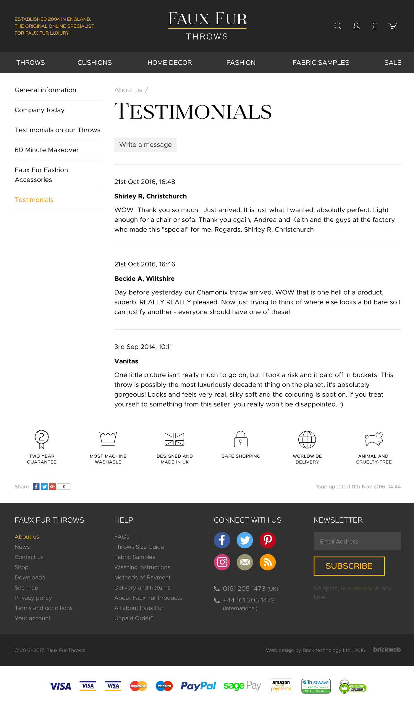 Established 2004 in England. The original online specialist for FAUX FUR LUXURY.