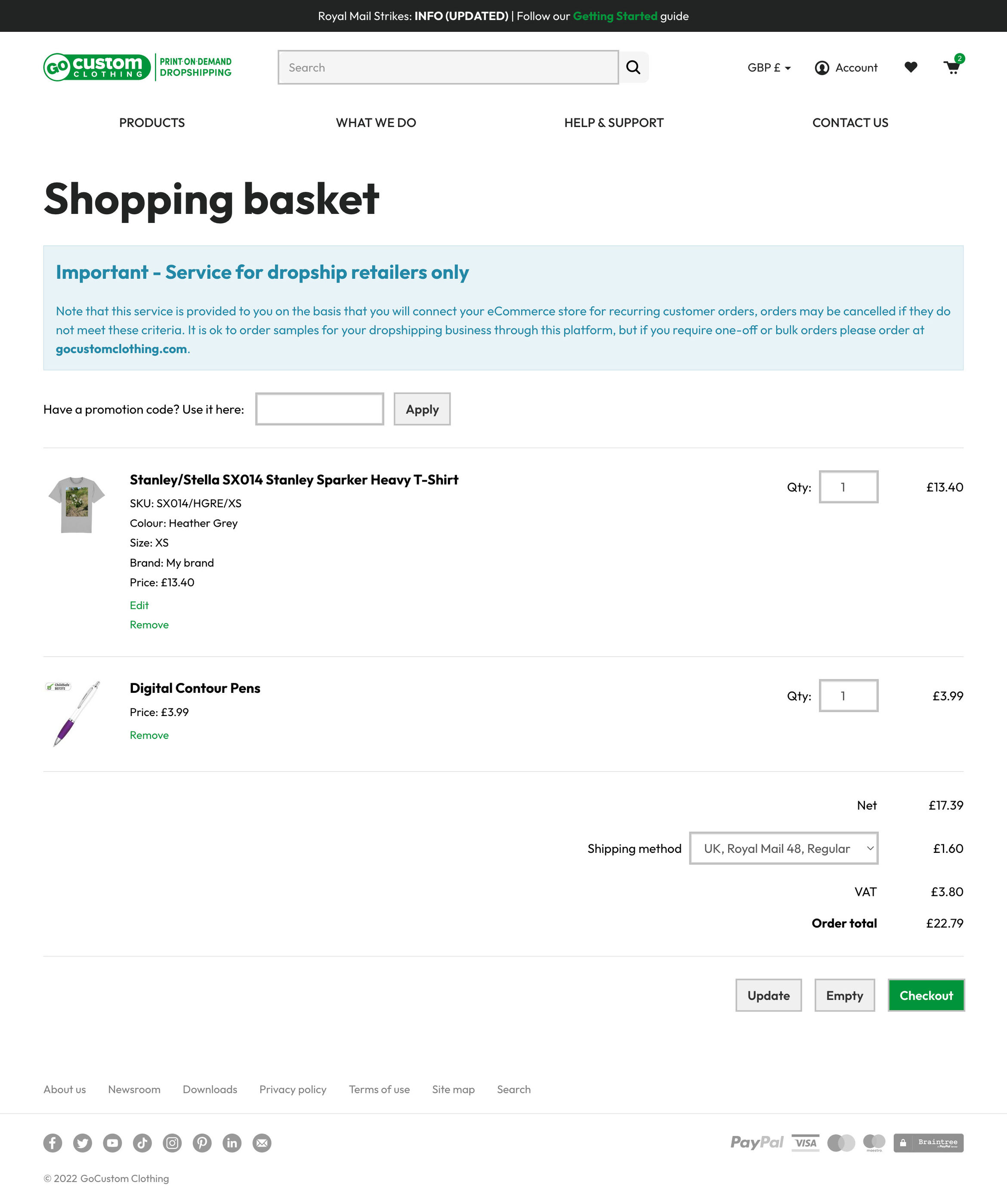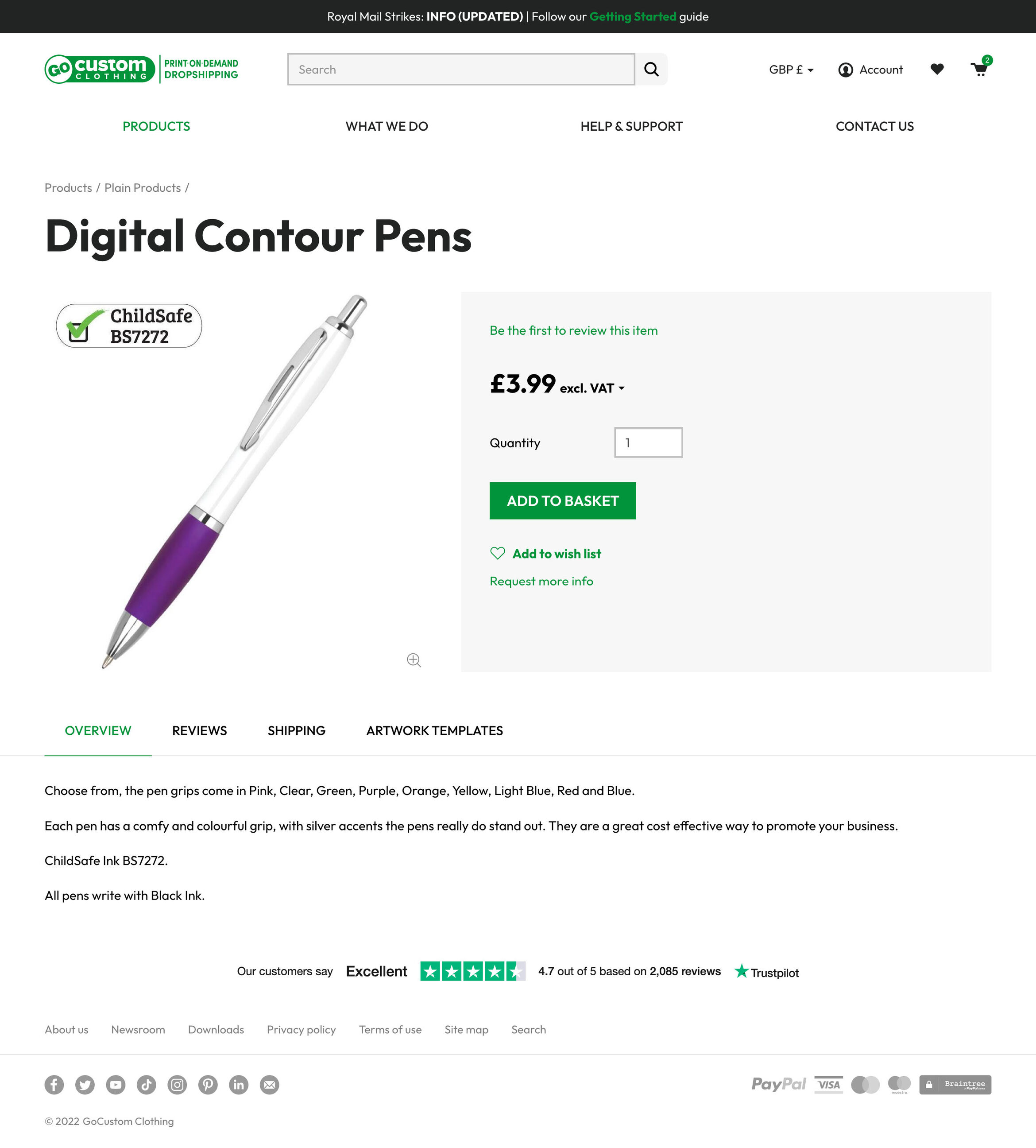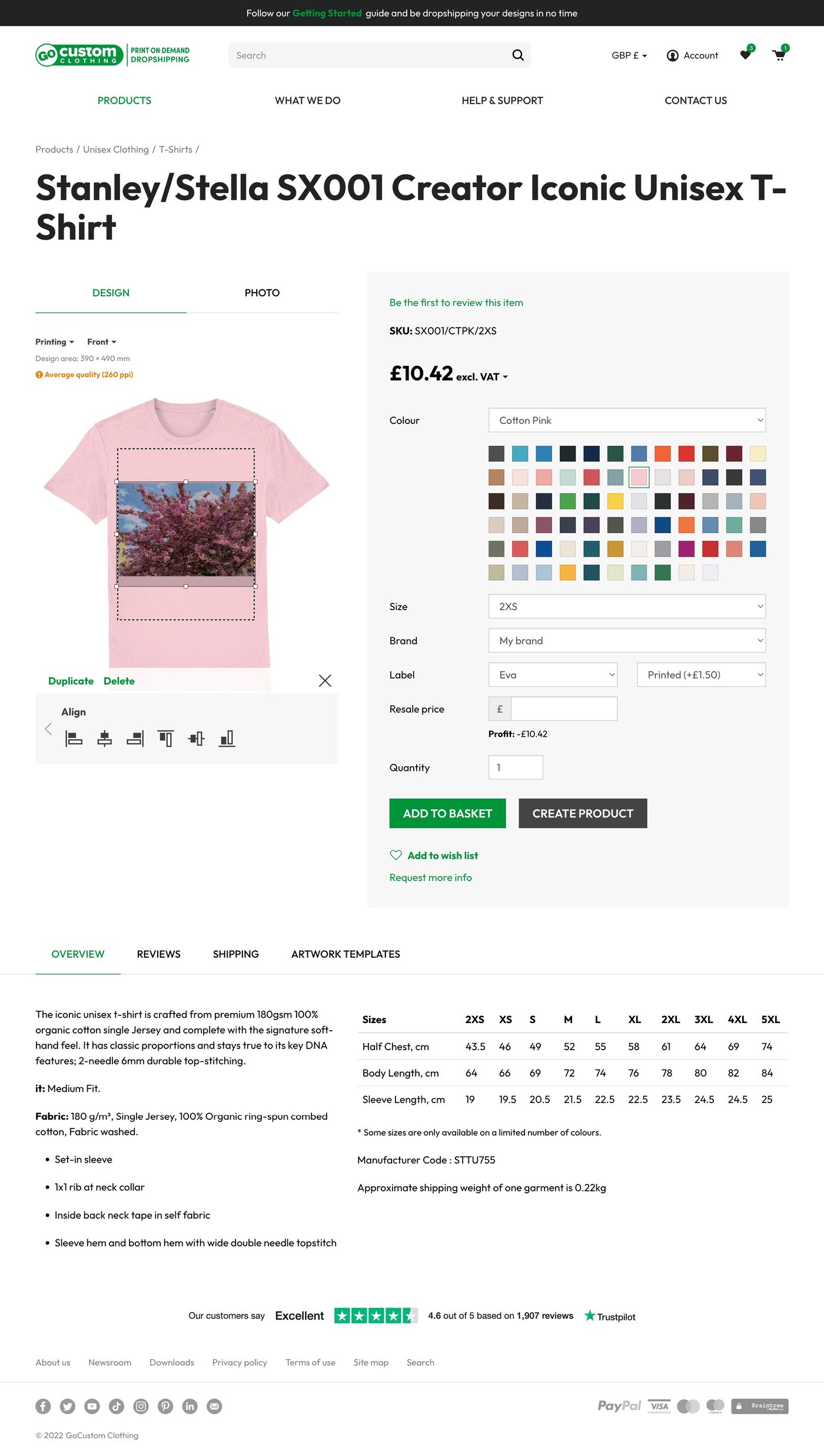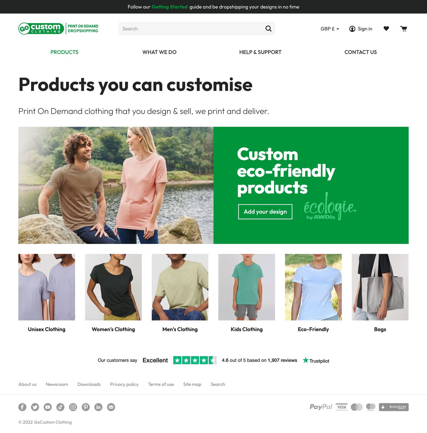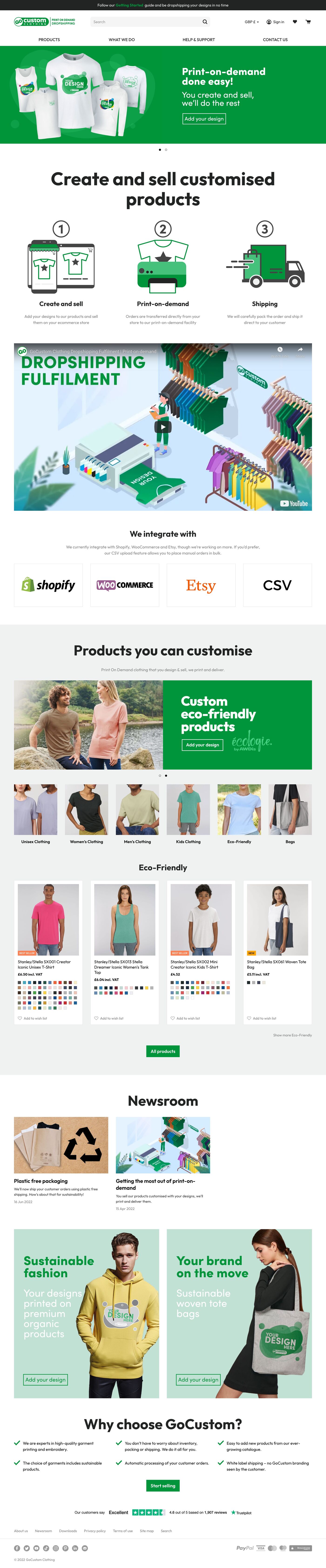 A seller in his/her own web-store (Shopify, Etsy, etc.) can sell designer clothes with an additional product (badge, pen, mugs, etc.).