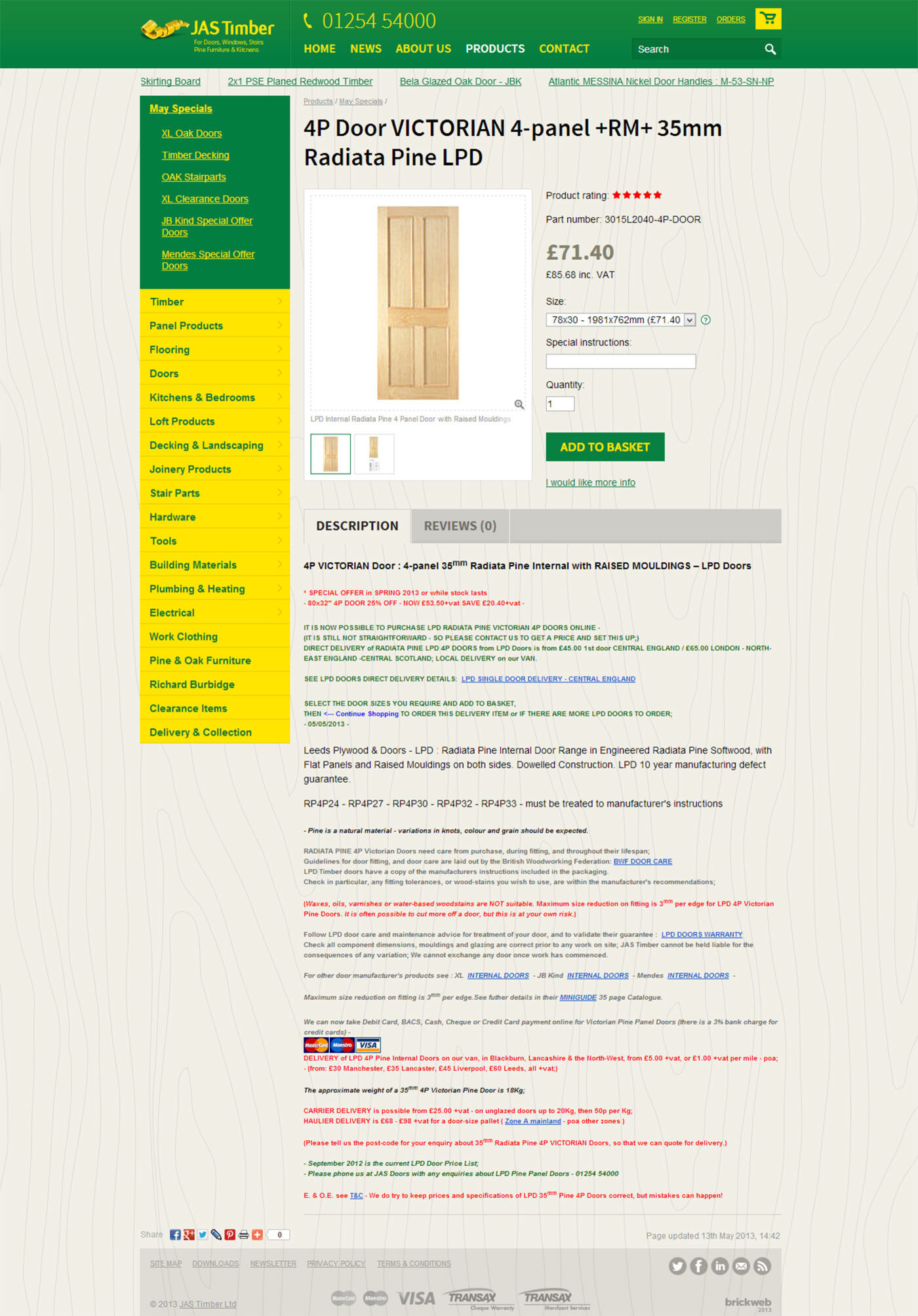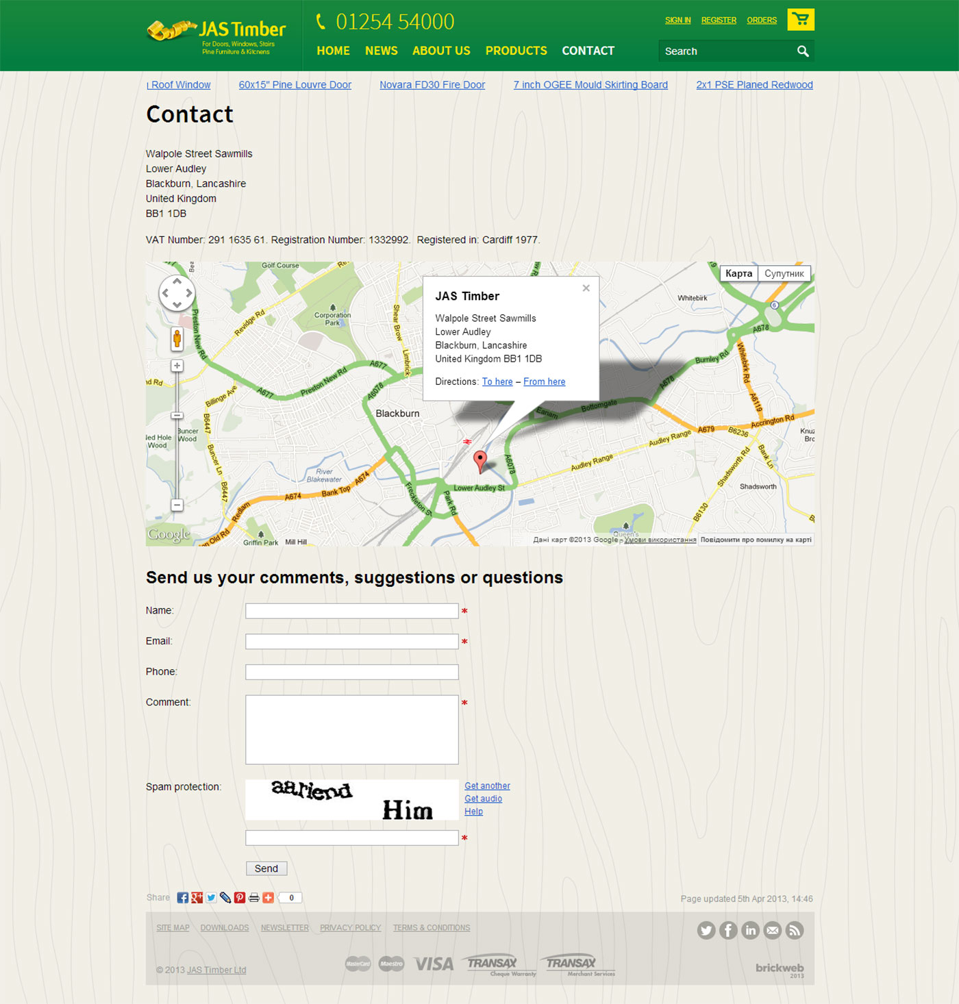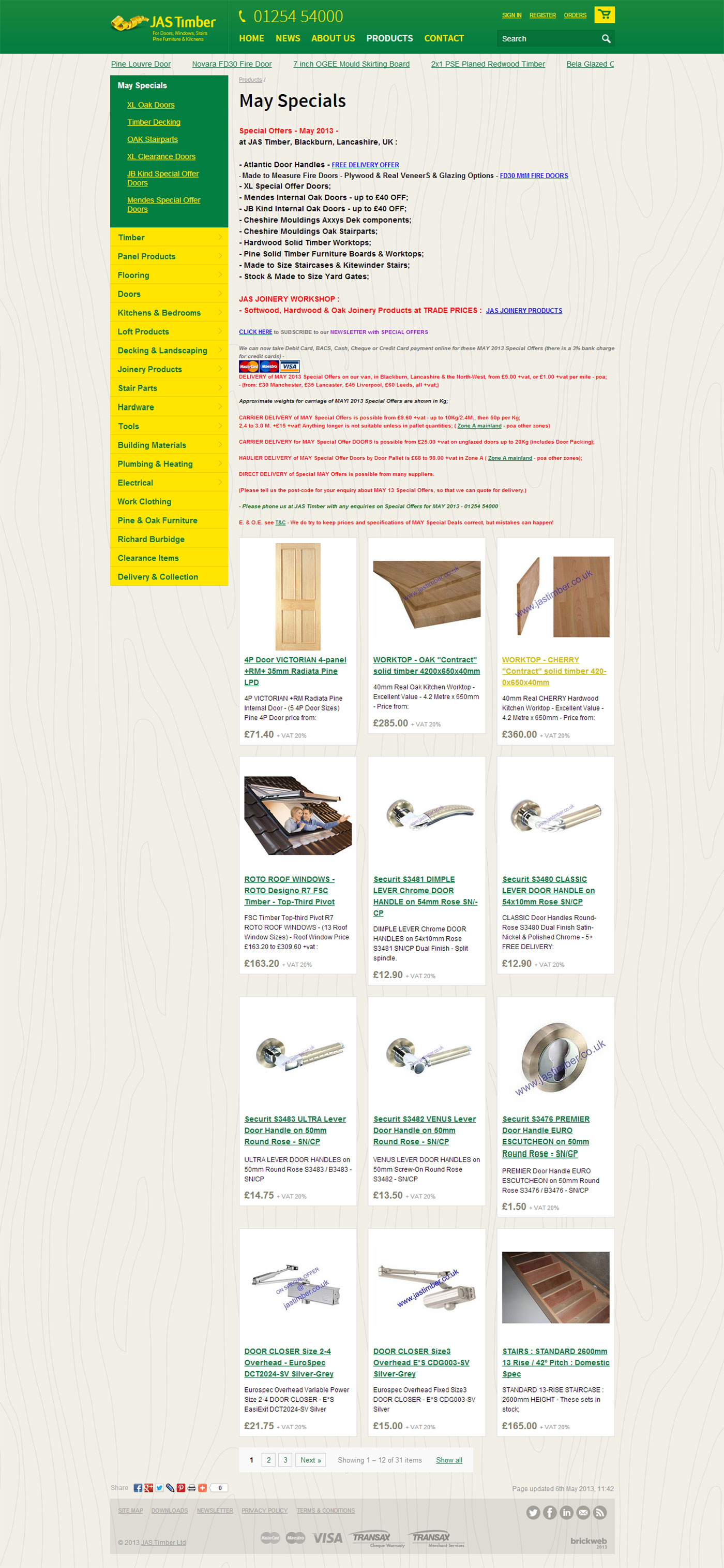 Colin Clarke of Brick Technology said: “Brick’s CMS 2.4 content managed system is a state-of-the-art system that allows our clients to interact quickly and effectively with customers, suppliers and enquirers. JAS Timber can now keep their site content fresh and compete effectively in the building supplies market place.”