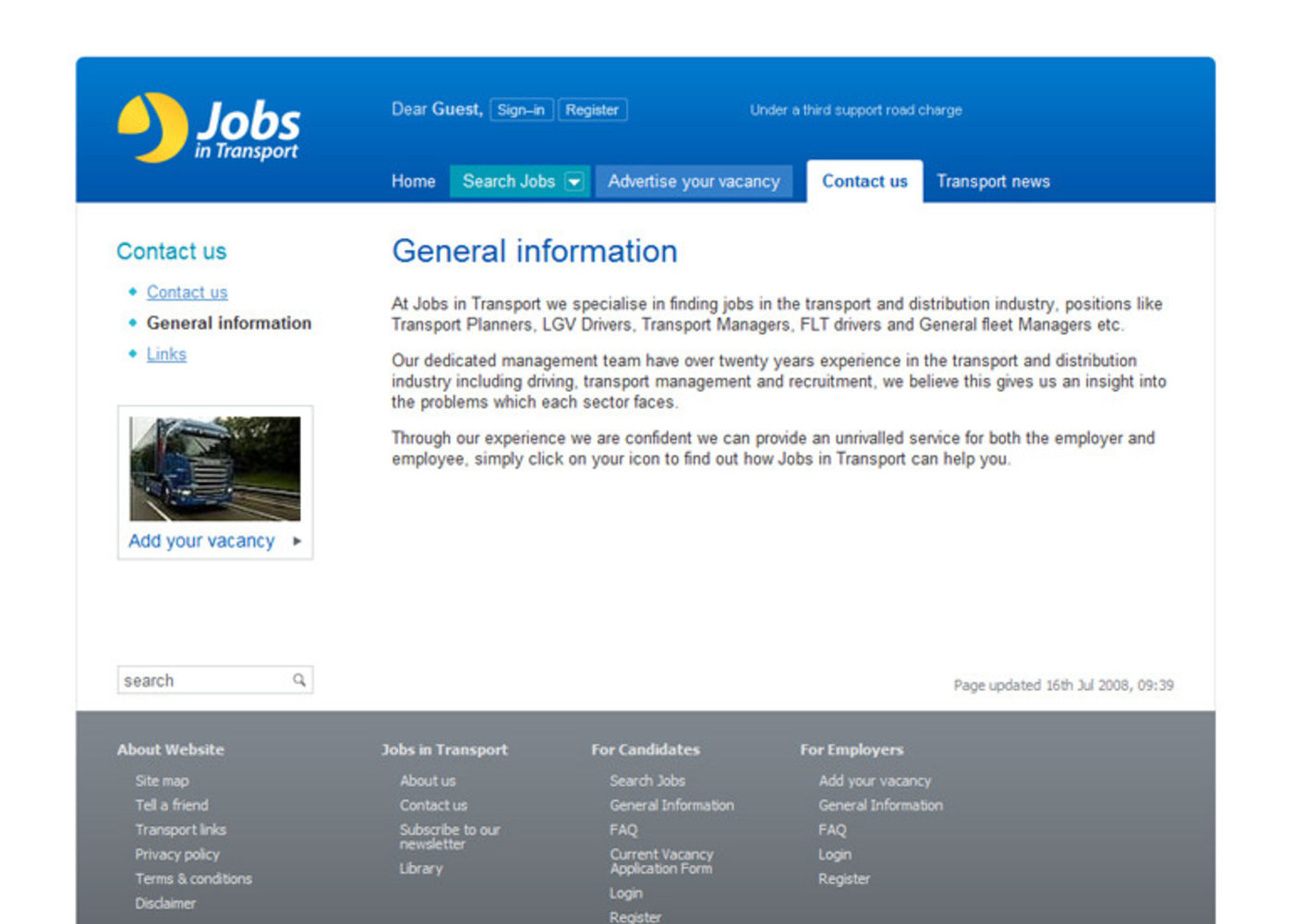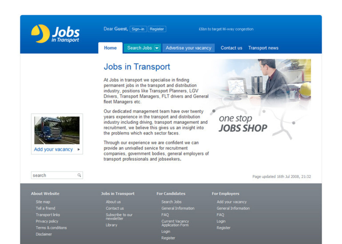 Logistics job website. Find or advertise a transport vacancy. Recruitment company online.