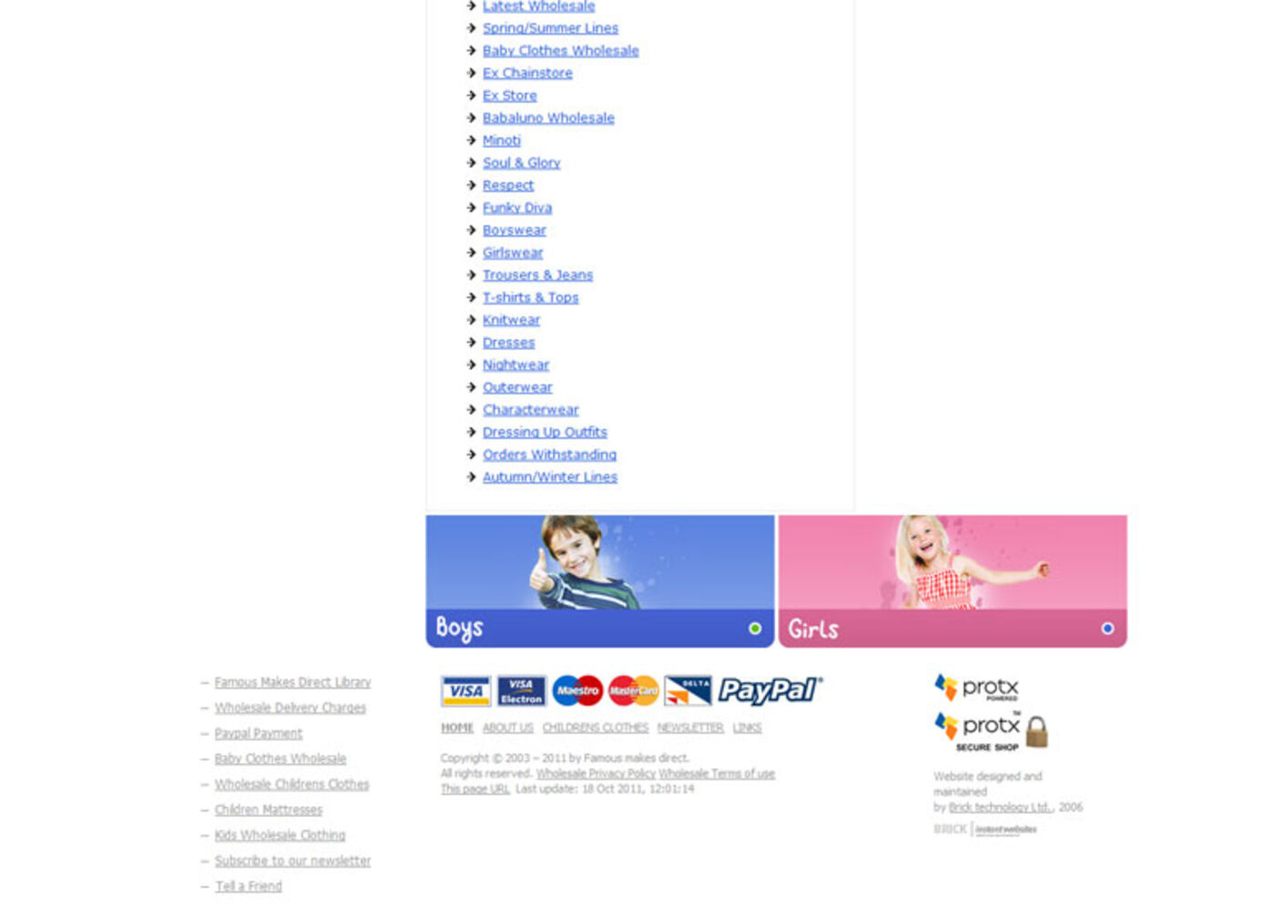 Kids Connection sells ex-branded chain store overmakes of children's clothing which allows us to offer our products on average 50% less than buying on the high street.