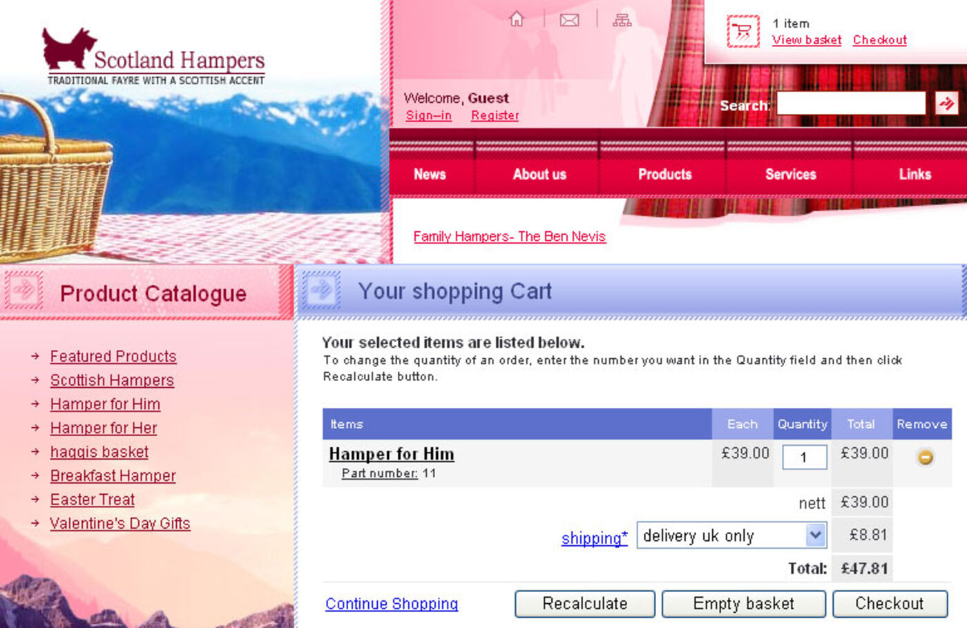 Easy to order Scottish hampers.