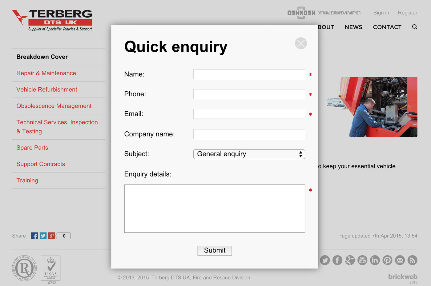 Supplier of Specialist Vehicles & Support.