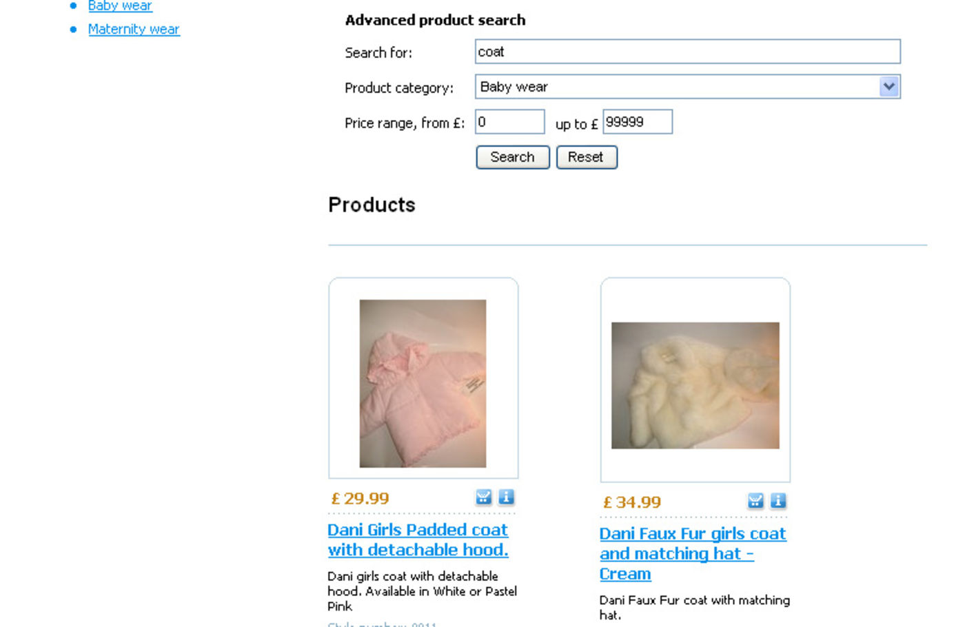 Advanced product search results
