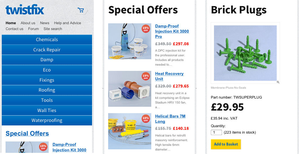 The Twistfix customer base is extensive and diverse, ranging from DIY enthusiasts to major building contractors; many famous buildings have benefited from the use of Twistfix products including York Minster Cathedral. These customers demand a high level of functionality from the websites they order from, a need that is easily met by Brickweb with our powerful combination of state-of-the-art technology and the unrivalled web expertise of our efficient and capable team.